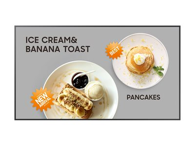Kommersiella funktioner Tizen Enterprise Platform, Auto Source Switching & Recovery, MagicInfo S10 Player, Custom Home, knapplås, Samsung VXT CMS, Chromium M94 Web Engine (uppgraderingsbar), Microsoft 365, 11:e generationens SoC (Kant-SU2e), New Home Interface, Home UI
