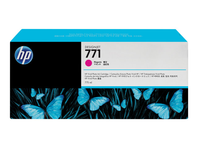 Produktbeskrivning HP 771 - magenta - original - bläckpatron Typ av produkt Bläckpatron Utskriftsteknik Bläckstråle Utskriftsfärg Magenta Kapacitet 775 ml Kompatibel med DesignJet Z6200, Z6600 Production Printer, Z6800 Photo Production - Nedladdningsbara filer