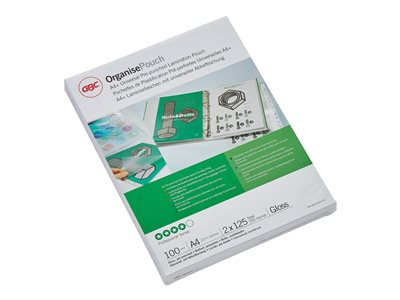 Produktbeskrivning GBC OrganisePouch - 100 - 229 x 303 mm - lamineringsfickor Typ av produkt Lamineringsfickor Medföljande antal 100 Mediastorlek 229 x 303 mm Mediefärger Glättat - Nedladdningsbara filer