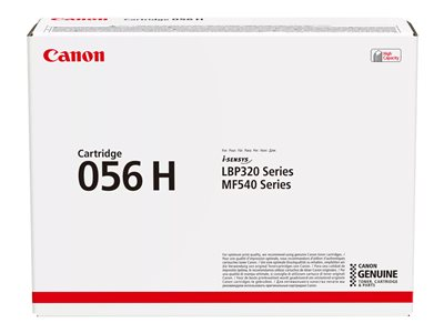 Produktbeskrivning Canon 056 H - hög kapacitet - svart - original - tonerkassett Typ av produkt Tonerkassett Utskriftsteknik Laser Utskriftsfärg Svart Kassettens kapacitet Hög kapacitet Egenskaper för tonerkassett Auto Seal Removal Technology Avkastning Upp till 21 000 sidor Kompatibel med ImageCLASS MF543dw; i-SENSYS LBP325x, MF542x, MF543x, MF552dw, MF553dw - Nedladdningsbara filer