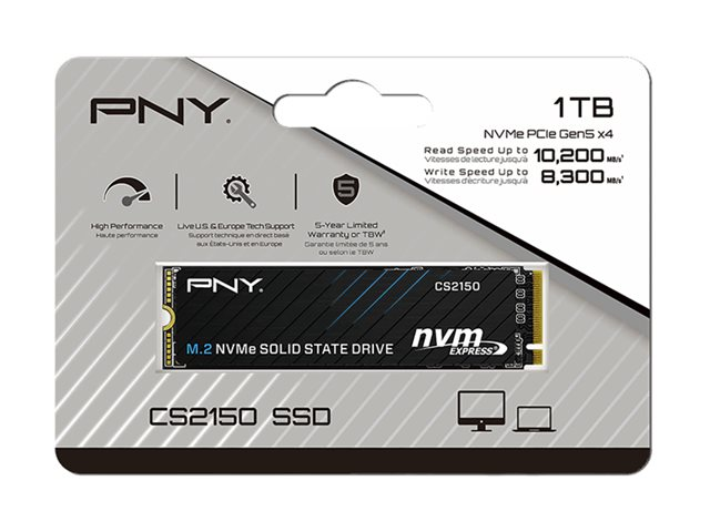 Produktbeskrivning PNY CS2150 - SSD - 1 TB - PCI Express 5.0 x4 (NVMe) Typ SSD-enhet - inbyggd Kapacitet 1 TB Maskinvarukryptering Ja Formfaktor M.2 2280 Gränssnitt PCI Express 5.0 x4 (NVMe) Egenskaper 3D NAND Technology, NVM Express (NVMe) 2.0, RAID 0+1 - fabrikskonfigurerad, End-to-end-datasökvägsskydd, Host Memory Buffer (HMB), Low-Density Parity Check, ECC (Error Correction Code), S.M.A.R.T. Dimensioner (BxDxH) 22 mm x 80 mm x 4 mm Vikt 6.6 g Tillverkarens garanti 5 års garanti - Nedladdningsbara filer