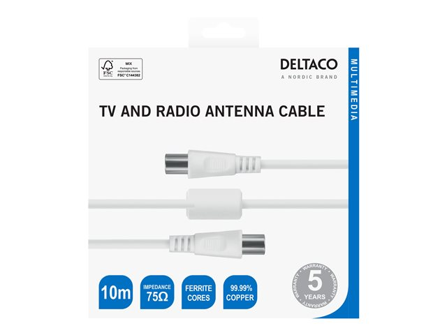 Produktbeskrivning DELTACO antennförlängningskabel - 10 m Kabel Antennförlängningskabel Teknik Koaxial Längd 10 m Färg Vit Kontaktdon IEC-kontakt - hane Kontakt (andra änden) IEC-kontakt - hona Egenskaper Ferritkärna, kopparledare Tillverkarens garanti 5 års garanti - Nedladdningsbara filer