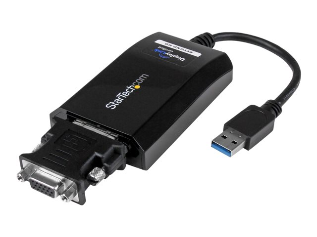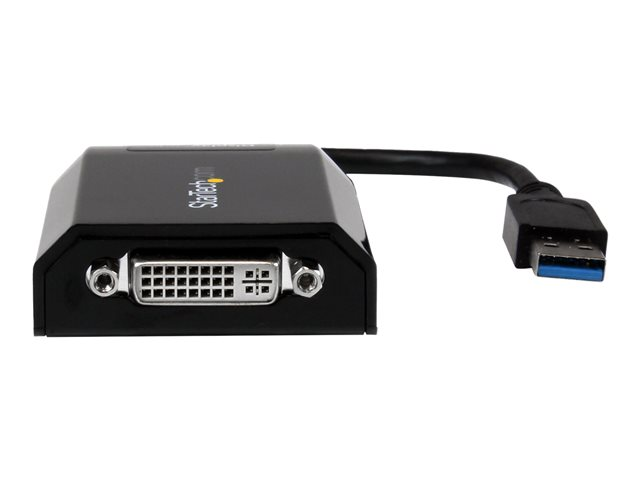 Produktbeskrivning StarTech USB 3.0 till DVI/VGA adapter - 2048x1152 - USB/DVI-adapter - USB typ A till DVI-I - 15.2 cm Typ USB/DVI-adapter Egenskaper 2048 x 1152 stöd, plasthölje, 512 MB minne Kabellängd 15.2 cm Kontaktdon 9-stifts USB typ A - hane (ingång) Kontakt (andra änden) 24+5 pin kombinerad DVI - hona (utgång) Standarder som följs USB / USB 2.0 / USB 3.0 Färg Svart Tillverkarens garanti 2 års garanti Designat för P/N: DVIDDMM10, DVIDDMM6, DVIDSMM10, DVIMM6, DVISPL1DD, HDDVIMM3, HDMIDVIMM10, HDMIDVIMM6 - Tillbehör