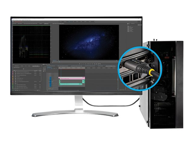 Produktbeskrivning StarTech.com 12ft (4m) HDMI 2.1 Cable, Certified Ultra High Speed HDMI Cable 48Gbps, 8K 60Hz/4K 120Hz HDR10+ eARC, Ultra HD 8K HDMI Cable/Cord w/TPE Jacket, For UHD Monitor/TV/Display - Dolby Vision/Atmos, DTS-HD (HDMM21V4M) - HDMI-kabel med Ethernet - 4 m Kabel Ultra High Speed - HDMI-kabel med Ethernet Teknik Skärmad American Wire Gauge (AWG) 30/32 Kabellängd 4 m Färg Grå, svart Kontaktdon HDMI - hane Kontakt (andra änden) HDMI - hane Egenskaper Passiv kabel, 4K120Hz stöd, 8K60 Hz (7680 x 4320) stöd Tillverkarens garanti Begränsad livstidsgaranti Designat för P/N: 4PORT-8K-HDMI-SWITCH - Tillbehör