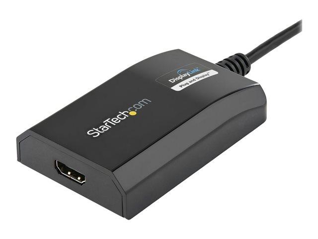 Produktbeskrivning StarTech.com USB 3.0 till HDMI-adapter - DisplayLink-certifierad - 1080p (1920x1200) - USB Type-A till HDMI-skärmadapterkonverterare - Externt video- och grafikkort - Windows/Mac - adapterkabel - HDMI / USB - 16 cm Kabel Adapterkabel - HDMI / USB Max effektupplösning 1920 x 1200 Kabellängd 16 cm Färg Svart Kontaktdon USB typ A - hane (ingång) Kontakt (andra änden) HDMI - hona (utgång) Standarder som följs USB 3.0/ USB 3.1 Egenskaper 1920 x 1200 (WUXGA) stöd Tillverkarens garanti 2 års garanti Designat för P/N: HDDVIMM3, HDMIDVIMM10, HDMIDVIMM6, HDMM10, HDMM12, HDMM15, HDMM1MP, HDMM25, HDMM2M, HDMM2MP, HDMM3, HDMM3MP, HDMM50, HDMM50A, HDMM6, HDPMM50 - Tillbehör