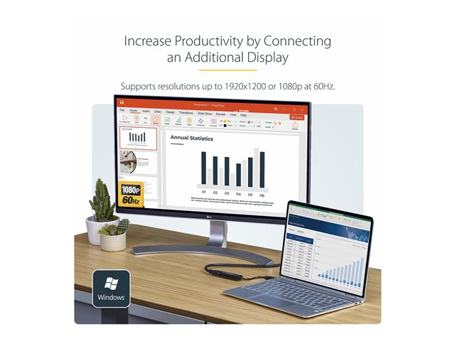 1080p (1920x1200) - Tunn/kompakt USB Type-A till HDMI-skärmadapterkonverterare - Externt video- och grafikkort - Svart - Endast Windows - adapterkabel - HDMI / USB - TAA-kompatibel - 19 cm