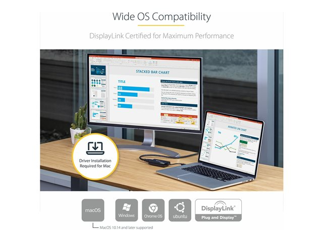 4K 30Hz Ultra HD - DisplayLink-certifierad - USB Type-A till HDMI-skärmadapteromvandlare för bildskärm - Externt video- och grafikkort - Mac och Windows - adapterkabel - HDMI / USB - TAA-kompatibel - 20 cm