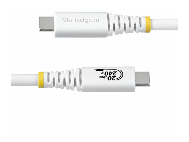 Produktbeskrivning StarTech.com - USB typ C-kabel - 24 pin USB-C till 24 pin USB-C - 2 m Typ USB typ C-kabel Teknik Koaxial Egenskaper 4K120Hz stöd, robust, utökat effektområde (EPR), Stöd för Power Delivery 3,1, flexibel, EMI-skydd, e-markörchip, HDR-stöd, HDR10-stöd, High Bit Rate 3 (HBR3), 20 Gb datahastighet, Display Stream Compression (DSC), upp till 240 W strömleverans, DisplayPort 1.4 med DSC, stöd för DisplayPort alt-läge 1,4 Kabellängd 2 m Kontaktdon 24 pin USB-C - hane Kontakt (andra änden) 24 pin USB-C - hane Standarder som följs USB4 / Thunderbolt 3 / Thunderbolt 4 / DisplayPort 1.4 Färg Vit - Tillbehör