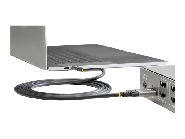 Produktbeskrivning StarTech.com 1 m sidoskruvlåsande USB C-kabel 10 Gbps - USB-IF-certifierad USB-C-kabel - USB 3.1/3.2 Gen 2 Type-C kabel - 100 W (5 A) Power Delivery-laddning, DP alt-läge - Dubbel skruvlåsning - USB-C-kabel ladda/synkronisera - USB typ C-kabel - USB-C till USB-C - 1 m Typ USB typ C-kabel Egenskaper Stöd för 4K, EMI-skydd, stödjer DisplayPort alternativläges, strömförsörjningsteknologi, ytterdiameter 4,8 mm, 10 Gb datahastighet Kabellängd 1 m Kontaktdon 24 pin USB-C - hane - rakt/lockande Kontakt (andra änden) 24 pin USB-C - hane - rak Standarder som följs USB 3.2 Gen 2 / DisplayPort 1.4 /Thunderbolt 3 Färg Grå, svart Tillverkarens garanti 2 års garanti - Tillbehör
