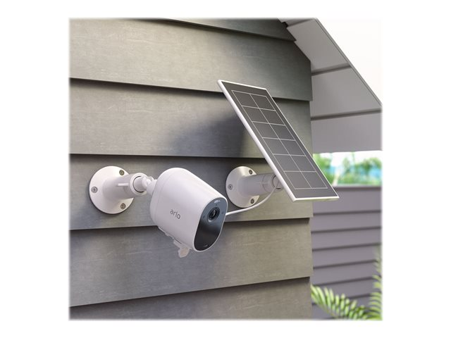 Produktbeskrivning Arlo Essential - nätverksövervakningskamera - med Solpanel Typ av enhet Nätverksövervakningskamera - fast - utomhusbruk - vädertålig Förpackad kvantitet 3 (specificationerna gällerenskild post) Kombinerad med Solpanel Ljud Ja: tvåvägs ljudkapacitet, inbyggd mikrofon, inbyggd högtalare Kameramonteringstyp Väggfäste, takmontering Dimensioner (BxDxH) 5.932 cm x 5.305 cm x 9.337 cm Vikt 203 g Färg Vit Anslutningsteknik Trådlös Kamera Färg - Dag&Natt Max upplösning 2560 x 1440 Rörelsedetektion Ja Videoformat 2K, 1080p, 720p Bildsensortyp 1/2.7" - 4 MP Gränssnitt Wi-Fi Plattform Google Home Intelligent assistent Alexa, Google Assistant - indirekt Egenskaper Mörkerkamera med färg, inbyggd siren (80 dB), inbyggd spotlight, RGB status-LED, PIR-detektering, automatisk integritetsslutare, Privacy Zone, ekoreducering, noise reduction, inbyggt omladdningsbart batteri, säkerhetskopiering i molnet, 850nm illuminator Tillverkarens garanti 1 års garanti Miljöparametrar (vid drift) -20 °C - 45 °C - Tillbehör