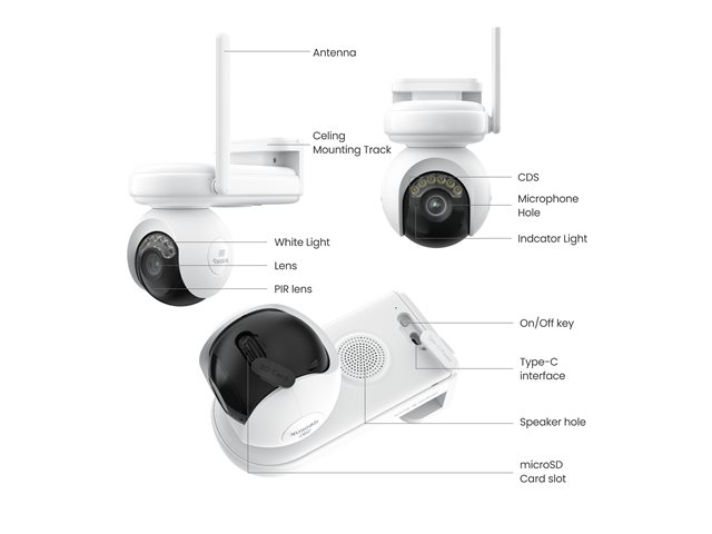 Produktbeskrivning Reolink Altas PT Ultra - nätverksövervakningskamera - torn Typ av enhet Nätverksövervakningskamera - panorering / lutning - torn - utomhusbruk - väderbeständig Ljud Ja: tvåvägs ljudkapacitet, inbyggd mikrofon, inbyggd högtalare Kameramonteringstyp Takmontering Dimensioner (BxDxH) 17.8 cm x 15.1 cm x 10.2 cm Vikt 853 g Anslutningsteknik Trådlös Kamera Färg - Dag&Natt Max upplösning 3840 x 2160 Bildhastighet (max) 15 frames per second Rörelsedetektion Ja Videoformat 4K Bildsensortyp CMOS - 1/1.8" - 8 MP Kontroll brännvidd Fast lins Brännvidd 4 mm Panoreringsområde (grader) 355 Lutningsområde (grader) 90 Gränssnitt IEEE 802.11a, IEEE 802.11ac, IEEE 802.11ax, IEEE 802.11b, IEEE 802.11g, IEEE 802.11n, Bluetooth 5.0 Intelligent assistent Alexa, Google Assistant Medföljande kablar 1 - USB-C-kabel - extern Egenskaper Automatisk spårning, ColorX technology, full-color night vision, detektering av djur, Person Detection, PIR-detektering, Vehicle Detection, scheduled recording, Time-Lapse-inspelning, 12 access users, smart alarm, återställningsknapp, inbyggd spotlight, solar charging support Tillverkarens garanti 2 års garanti Miljöparametrar (vid drift) -10 °C - 55 °C; 20 - 85% relativ luftfuktighet - Nedladdningsbara filer