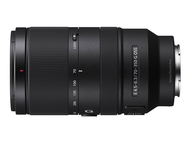 Produktbeskrivning Sony SEL70350G - telezoomobjektiv - 70 mm - 350 mm Objektivsystem Telezoomobjektiv Avsedd för Spegellöst system Monteringstyp Sony E-mount Bländaröppning F/4.5-6.3 Brännvidd 70 mm - 350 mm Optisk zoom 5 x Min. fokuseringsavstånd 1.1 m Fokuseringsjustering Automatisk, manuell Optisk konstruktion 13 grupper / 19 element Specialfunktioner Tele, zoom Filterstorlek 67 mm Längd 14.2 cm Vikt 625 g Designat för Sony; Cinema Line; NXCAM; a; a NEX; a VLOGCAM; a1; a1 II; a3000; a3500; a5000; a5100; a6000; a6100; a6300; a6400; a6500; a6600; a6700; a7; a7 II; a7 III; a7 IV; a7C; a7C II; a7CR; a7R; a7R II; a7R III; a7R IV; a7R V; a7s; a7s II; a7s III; a9; a9 II; a9 III - Nedladdningsbara filer