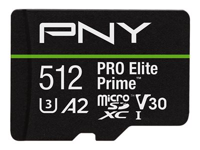 Produktbeskrivning PNY PRO Elite Prime - flash-minneskort - 512 GB - mikroSDXC UHS-I Produkttyp Flash-minneskort Formfaktor mikroSDXC UHS-I minneskort Minneskapacitet 512 GB Hastighet A2 / Video Class V30 / UHS-I U3 / Class10 Tillverkarens garanti Begränsad livstidsgaranti - Nedladdningsbara filer