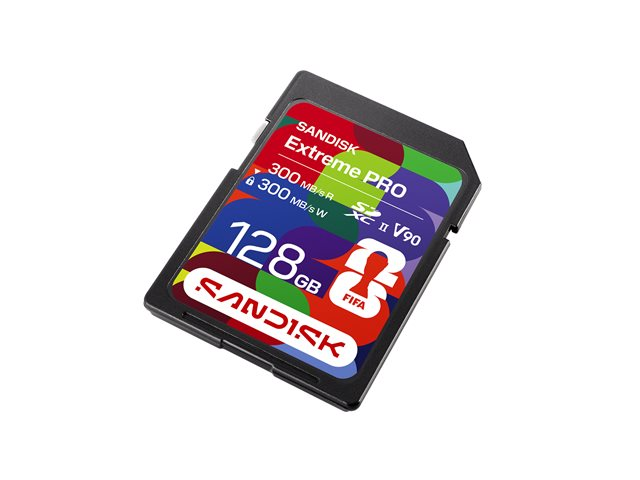 Produktbeskrivning SanDisk Extreme PRO - FIFA World Cup 2026 Edition - flash-minneskort - 128 GB - SDXC UHS-II Produkttyp Flash-minneskort Formfaktor SDXC UHS-II minneskort Minneskapacitet 128 GB Hastighet Video Class V90 / UHS-II Medföljande programvara SanDisk Memory Zone Tillverkarens garanti Begränsad livstidsgaranti - Nedladdningsbara filer