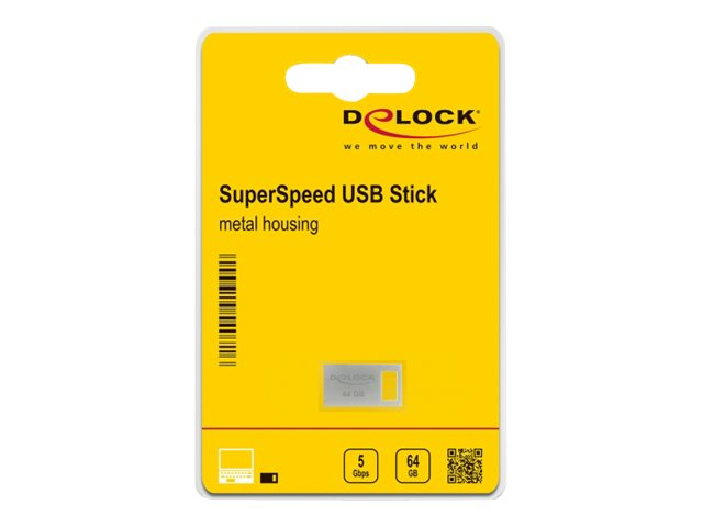 Produktbeskrivning Delock - USB flash-enhet - 64 GB Produkttyp USB flash-enhet Gränssnittstyp USB 3.2 Gen 1 Minneskapacitet 64 GB Operativsystem erfordras Microsoft Windows 7 / 8.1 / 10 (32/64 bits), Linux Kernel 3.3 eller senare, Apple macOS Mojave 10.14.3 eller högre, Google Chrome OS 72 eller senare - Nedladdningsbara filer