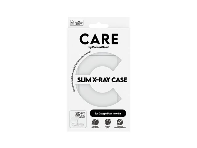 Produktbeskrivning CARE by PanzerGlass X-Ray - baksidesskydd för mobiltelefon Typ av produkt Baksidesskydd för mobiltelefon Dimensioner (BxDxH) 8.1 cm x 1.4 cm x 16.9 cm Vikt 31 g Material Termoplastisk polyuretan (TPU) Färg Transparent Återvunnet produktinnehåll 100 % - tillverkad av återvunnen termoplastisk polyuretan (TPU) Designat för Google Pixel 9A - Nedladdningsbara filer