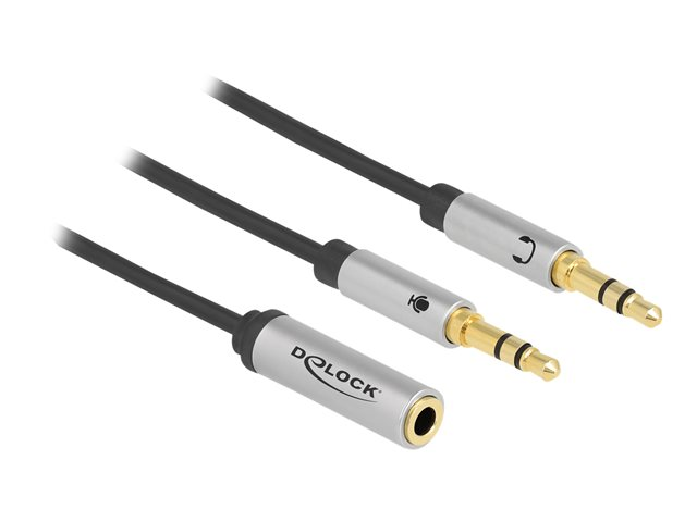 Produktbeskrivning Delock headset-adapter - 27 cm Kabel Headset-adapter American Wire Gauge (AWG) 30 Längd 27 cm Färg Svart Kontaktdon Ministereo 3,5 mm 4 stift - hona Kontakt (andra änden) 2 x mini-phone stereo 3.5 mm - hane Egenskaper Silverpläterade ledare, plastpåsförpackning - Nedladdningsbara filer