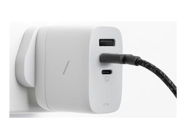 Produktbeskrivning Native Union strömadapter - GaN - 2 x USB-C, USB - 67 Watt Typ av produkt Strömadapter Utformad för Surfplatta, mobiltelefon, anteckningsbok, trådlösa öronspetsar Dimensioner (BxDxH) 3.1 cm x 5.3 cm x 5.7 cm Vikt 117 g Färg Vit Lokalisering Internationellt Typ av utkontakt Total 3: 2 x USB-C, USB Nätspänning AC 100-240 V Tillförd spänning 5 / 9 / 12 V Max elektrisk ström 3.35 A Snabbladdningsteknik Power Delivery, Qualcomm Quick Charge 3.0, Fast Charge Effekt 67 Watt Tillverkarens garanti 2 års garanti - Nedladdningsbara filer