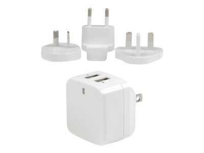 Produktbeskrivning StarTech.com USB-väggladdare med två portar - internationell resa - 17 W/3,4 A - vit strömadapter - USB - 17 Watt Typ av produkt Strömadapter Utformad för Surfplatta, mobiltelefon Vikt 132 g Färg Vit Typ av utkontakt Total 2: USB Nätspänning AC 100-240 V Tillförd spänning 5 V Max elektrisk ström 3.4 A Effekt 17 Watt Strömenhetsinformation 4-stifts USB typ A - 1 A