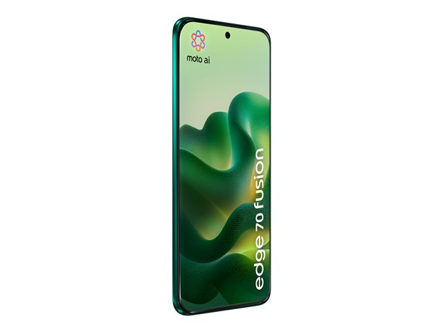 Produktbeskrivning Motorola Edge 70 Fusion - pantone sportgrön - 5G pekskärmsmobil - 256 GB - GSM Typ av produkt 5G pekskärmsmobil URL med QR-kod för energimärke Https://eprel.ec.europa.eu/qr/2582967 Energiklass Klass A EU:s datalagar Https://en-emea.support.motorola.com/app/answers/detail/a_id/188663/ Tillverkarens modellnummer XT2605-2 Bildskärm OLED-skärm - 2772 x 1272 pixlar - 6.78" - 450 ppi - (144 Hz) - Extreme AMOLED - HDR - Corning Gorilla Glass 7i (repfria glas) Processor Qualcomm Snapdragon 7s Gen 3 (8-kärnig) Minne RAM 8 GB / Internminne 256 GB Operativsystem Android 16 Huvudkamera 50 megapixlar - LYTIA 710-sensor - f/1.8 - fokus: automatisk Kamera två 13 Megapixel - ultravidvinkellins - f/2.2 - makrokamera Kamera tre - 3-i-1 ljussensor Främre kamera 32 megapixlar f/2.2 Serviceleverantör Inte specificerad Simkort Dual-SIM - nano-SIM, elektroniskt SIM-kort (e-SIM) Trådlöst gränssnitt Bluetooth, NFC, Wi-Fi 6 Säkerhetsenheter Fingeravtrycksläsare (under monitorn), ansiktsigenkänning Kontakter USB-C Skydd Vattenavvisande, dammtålig, smutsbeständig, sandtålig, tryckbeständig Färg Pantone sportgrön Dimensioner (BxDxH) 75.6 mm x 7.99 mm x 162.76 mm Vikt 193 g Specifik absorptionshastighet (SAR) 0.98 W/kg (head)