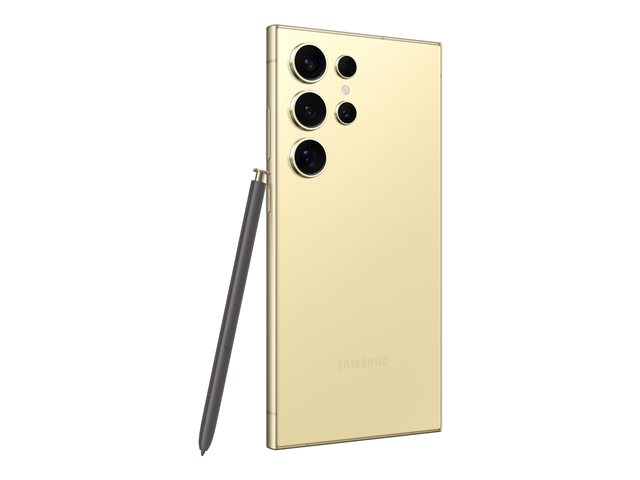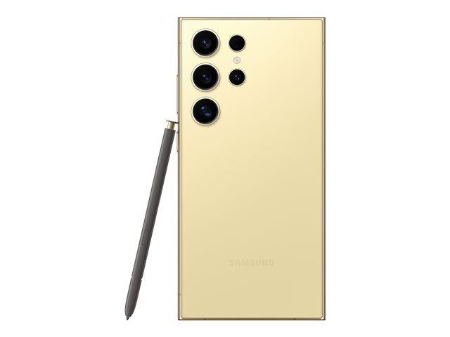 Produktbeskrivning Samsung Galaxy S24 Ultra - titangul - 5G pekskärmsmobil - 256 GB - GSM Typ av produkt 5G pekskärmsmobil Tillverkarens modellnummer SM-S928B/DS Bildskärm OLED-skärm - 3120 x 1440 pixlar - 6.8" - (120 Hz) - Dynamic AMOLED 2X - Corning Gorilla Glass Armor (reptåligt glas) Processor Qualcomm Snapdragon 8 Gen 3 for Galaxy 3.39 GHz (8-kärnig) Minne RAM 12 GB / 256 GB Operativsystem Android 14 med Samsung One UI 6.1 Huvudkamera 200 megapixlar - vidvinkelobjektiv - f/1.7 - fokus: automatisk Kamera två 50 Megapixel - telefotoobjektiv - 5x optisk zoom - f/3.4 Kamera tre 12 Megapixel - ultravidvinkellins - f/2.2 Kamera fyra 10 Megapixel - telefotoobjektiv - 3x optisk zoom - f/2.4 Främre kamera 12 megapixlar f/2.2 - automatisk Serviceleverantör Inte specificerad Simkort Dual-SIM - nano-SIM, elektroniskt SIM-kort (e-SIM) Trådlöst gränssnitt NFC, UWB, Bluetooth, Wi-Fi 7, Wi-Fi 7 Säkerhetsenheter Fingeravtrycksläsare Kontakter USB-C Standarder för trådlös laddning WPC, Qi, Fast Wireless Charging 2.0, Wireless PowerShare Skydd Dammtät, stänksäker, vattenavvisande Färg Titangul Dimensioner (BxDxH) 79 mm x 8.6 mm x 162.3 mm Vikt 232 g Specifik absorptionshastighet (SAR) 1.056 W/kg (head)