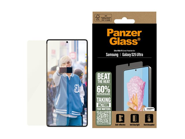 Produktbeskrivning PanzerGlass - skärmskydd för mobiltelefon - ultra-bred passform, allt-i-ett Typ av produkt Skärmskydd - glas Avsedd för Mobiltelefon Skydd Reptålig, vattenavstötande, droppskydd, stötsäkert, värmeavledning, motstår fingeravtryck, oljeavvisande, antiblåljus Beläggning Oleofob, antireflex Förpacknings innehåll Skärmskydd, EasyAligner Produktmaterial PET (Polyethylene Terephthalate), allerglas (mikrofraktur2023) Dimensioner (BxDxH) 7.405 cm Längd 15.922 cm Grovlek 0.28 mm Vikt 16 g Ramfärg Svart Designat för Samsung Galaxy S25 Ultra - Tillbehör