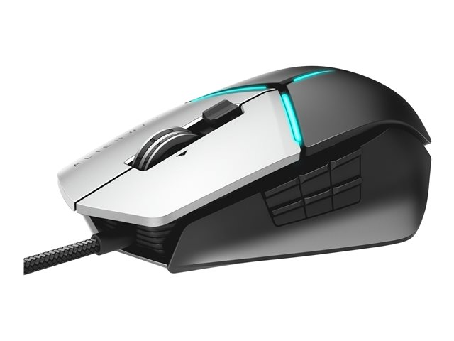 Produktbeskrivning Alienware Elite Gaming Mouse AW958 - mus - USB - svart, silver Typ av enhet Mus Anslutningsteknik Kabelansluten - USB Färg Svart, silver Dimensioner (BxDxH) 9.6 cm x 4.04 cm x 13 cm Vikt 197 g Teknik för rörelsedetektering Optisk Antal knappar 13 Rörelseupplösning 12000 dpi Prestanda 50 G maximal acceleration, 250 tum per sekund Egenskaper On-the-fly DPI-omkoppling, flätad kabel, 13 programmerbara tangenter, 16,8 miljoner mångfärgad belysning, 1 000 Hz avfrågningshastighet, Omron-teknologi, mekaniska nycklar, Pixart PMW 3360 optisk spelsensor, justerbart handledsstöd Kabellängd 1.8 m Operativsystem erfordras Windows 10 Designat för Alienware 17 R5, Area-51 R3, Area-51 R4, Area-51 R5, Area-51 R6, Area-51 R7, Area-51m, Aurora R7; Inspiron 5490 AIO, 7790 AIO; XPS 8930 - Nedladdningsbara filer