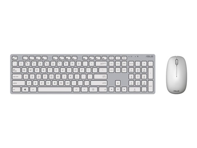 Produktbeskrivning ASUS W5000 - sats med tangentbord och mus - 100% - QWERTZ - tysk - vit Inmatningsenhet Typ av enhet Sats med tangentbord och mus Gränssnitt 2.4 GHz Trådlös mottagare Trådlös USB-mottagare Anslutningsteknik Trådlös Lokalisering och layout QWERTZ tysk Snabbtangentsfunktion Windows-genvägar Numeriskt tangentbord Ja Pekenhet Mus - trådlös - optisk Prestanda Realtidssensitivitetsomkoppling 800/1200/1600 dpi Färg Vit - Nedladdningsbara filer