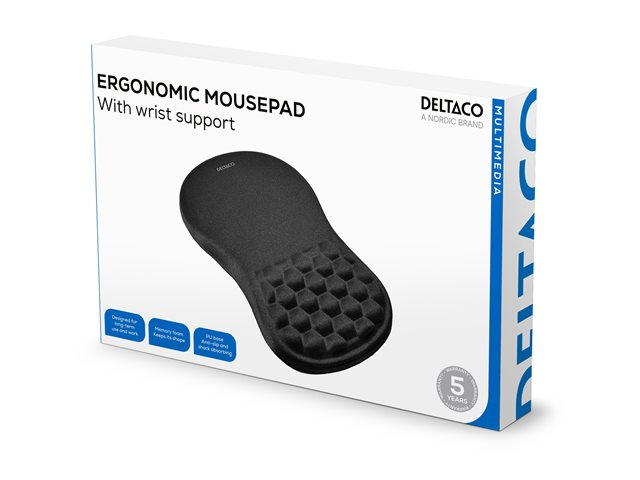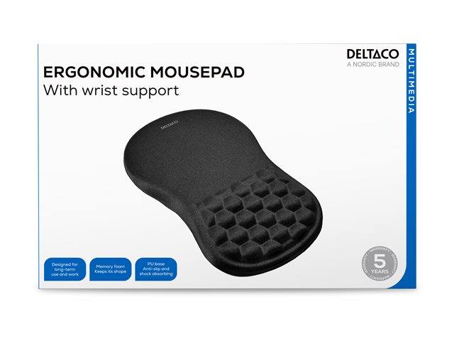 Produktbeskrivning DELTACO MA-0100 - musmatta - ergonomic Produkttyp Musmatta Produktmaterial Minnesskum, gel, tyg Dimensioner (BxDxH) 20.3 cm x 31.5 cm x 3 cm Vikt 450 g Färg Svart Tillverkarens garanti 5 års garanti - Nedladdningsbara filer
