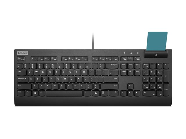 Produktbeskrivning Lenovo Smartcard Wired Keyboard II - tangentbord - full size, 3-zone layout - QWERTY - brittisk - svart Inmatningsenhet Typ av enhet Tangentbord Gränssnitt USB Anslutningsteknik Kabelansluten Lokalisering och layout QWERTY brittisk Antal tangenter 106 Säkerhetsenheter Smartkortsläsare Färg Svart Dimensioner (BxDxH) 44.5 cm x 16.2 cm x 2.4 cm Vikt 816 g Förpackningstyp Brun låda Typ av prissättning Customer-replaceable Unit (CRU) - Nedladdningsbara filer
