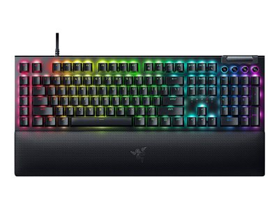 Produktbeskrivning Razer BlackWidow V4 - tangentbord - QWERTZ - tysk Inmatningsenhet Typ av enhet Tangentbord Bakgrundsbelyst RGB Chroma Gränssnitt USB-C Anslutningsteknik Kabelansluten Lokalisering och layout QWERTZ tysk Antal snabbtangenter 11 Snabbtangentsfunktion Scrollning, makroknappar, mediereglage Numeriskt tangentbord Ja Gaming Ja Nyckellåstyp Razer Yellow Tillverkarens garanti 2 års garanti  -  Nedladdningsbara filer