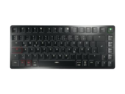 Produktbeskrivning CHERRY KW X ULP 2.0 MINI - tangentbord (påse) - 75% compact - QWERTZ - tysk - svart Inmatningsenhet Typ av enhet Tangentbord Bakgrundsbelyst Vit Gränssnitt 2.4 GHz, Bluetooth 5.2, USB Trådlös mottagare Nano trådlös USB-mottagare Anslutningsteknik Kabelansluten, trådlös Lokalisering och layout QWERTZ tysk Snabbtangentsfunktion N-tangentsrollover Nyckellåstyp CHERRY MX ultralåg profil Färg Svart Dimensioner (BxDxH) 31.94 cm x 13.22 cm x 1.563 cm Vikt 570 g Tillverkarens garanti 3 års garanti - Nedladdningsbara filer