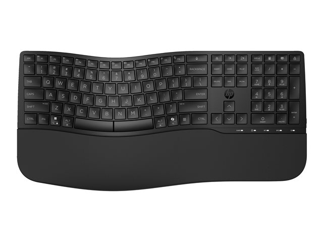 Produktbeskrivning HP 685 - tangentbord - dubbel läge, 3-zons layout, multi-enhet, 23 programmerbara knappar, OS auto-detektering, låg profil tangenthöjd - 100% full size - italiensk - svart Inmatningsenhet Typ av enhet Tangentbord - ergonomisk Gränssnitt 2.4 GHz Anslutningsteknik Trådlös Lokalisering och layout Italiensk Snabbtangentsfunktion Diktering, språkomkopplare, Copilot Skydd Spillbeständig Numeriskt tangentbord Ja Färg Svart Dimensioner (BxDxH) 44.23 cm x 21.44 cm x 3.52 cm Vikt 845 g - Nedladdningsbara filer