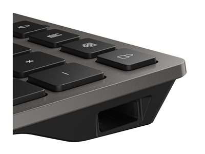 Produktbeskrivning HP 725 - tangentbord - flera enheter, uppladdningsbar, drivs av SuperCapacitor full size - QWERTY - internationell engelska - svart kvällning Inmatningsenhet Typ av enhet Tangentbord Gränssnitt 2.4 GHz, Bluetooth Trådlös mottagare Trådlös USB-mottagare Anslutningsteknik Trådlös Lokalisering och layout QWERTY internationell engelska Snabbtangentsfunktion Diktering, Copilot, PC-lås, kalkylator, Caps Lock Skydd Spillbeständig Numeriskt tangentbord Ja Färg Svart kvällning Tillverkarens garanti 1 års garanti - Nedladdningsbara filer