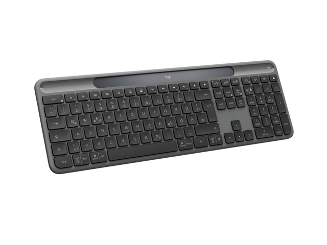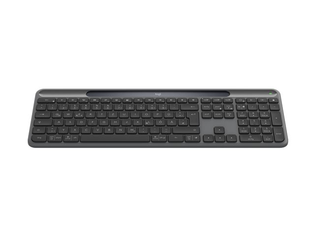 Produktbeskrivning Logitech Signature Slim Solar+ K980 for Business - tangentbord full size - QWERTZ - tysk - grafit Inmatningsenhet Typ av enhet Tangentbord Gränssnitt Bluetooth LE, USB-C Trådlös mottagare Logitech Logi Bolt USB-mottagare Anslutningsteknik Trådlös Lokalisering och layout QWERTZ tysk Antal tangenter 108 Snabbtangentsfunktion Easy-Switch, AI-lanseringsnyckel, anpassningsbar åtgärdsknapp, mikrofondämpning, video på/av Numeriskt tangentbord Ja Nyckellåstyp Saxknappar Färg Grafit Dimensioner (BxDxH) 43.08 cm x 14.29 cm x 2.02 cm Vikt 700 g Tillverkarens garanti 2 års garanti - Nedladdningsbara filer