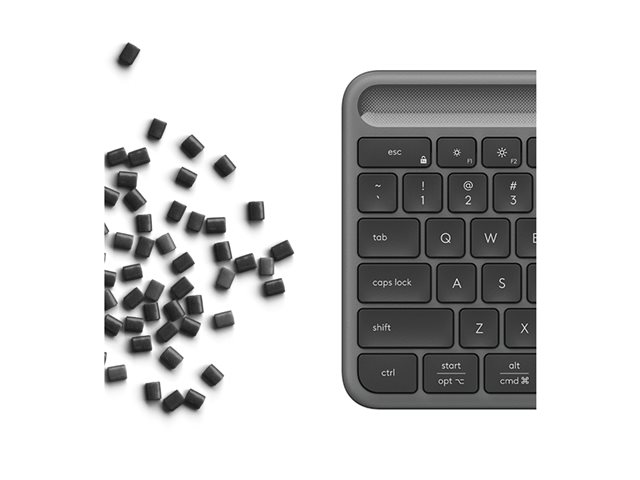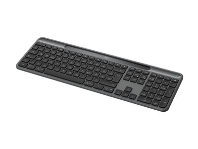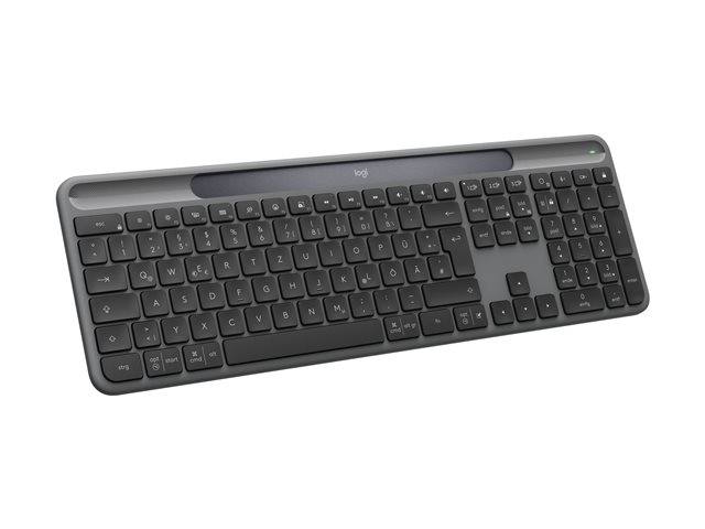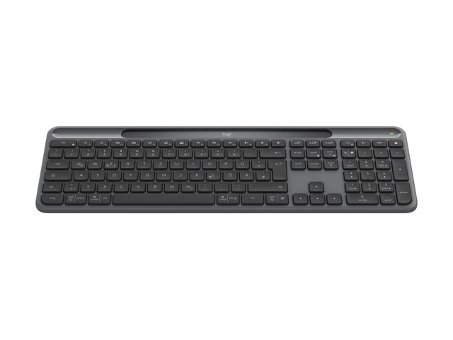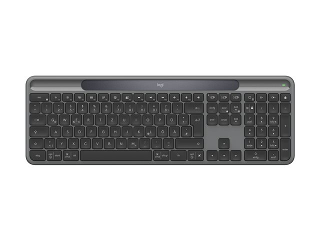 Produktbeskrivning Logitech Signature Slim Solar+ K980 - tangentbord full size - QWERTZ - tysk - grafit Inmatningsenhet Typ av enhet Tangentbord Gränssnitt Bluetooth LE Anslutningsteknik Trådlös Lokalisering och layout QWERTZ tysk Snabbtangentsfunktion Anpassningsbar åtgärdsknapp, Easy-Switch, AI-lanseringsnyckel Numeriskt tangentbord Ja Nyckellåstyp Scissor switches Färg Grafit Dimensioner (BxDxH) 43.08 cm x 14.29 cm x 2.02 cm Vikt 700 g Tillverkarens garanti 2 års garanti - Nedladdningsbara filer