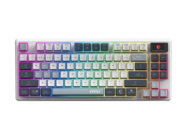 Produktbeskrivning MSI FORGE GK600 - tangentbord - hotswap TKL - QWERTY - amerikansk Inmatningsenhet Typ av enhet Tangentbord Bakgrundsbelyst RGB Gränssnitt Bluetooth, USB, 2.4 GHz Anslutningsteknik Trådlös, kabelansluten Lokalisering och layout QWERTY amerikansk Antal tangenter 83 Snabbtangentsfunktion Multimedia Dimensioner (BxDxH) 34.8 cm x 14 cm x 4.5 cm Vikt 943 g - Nedladdningsbara filer