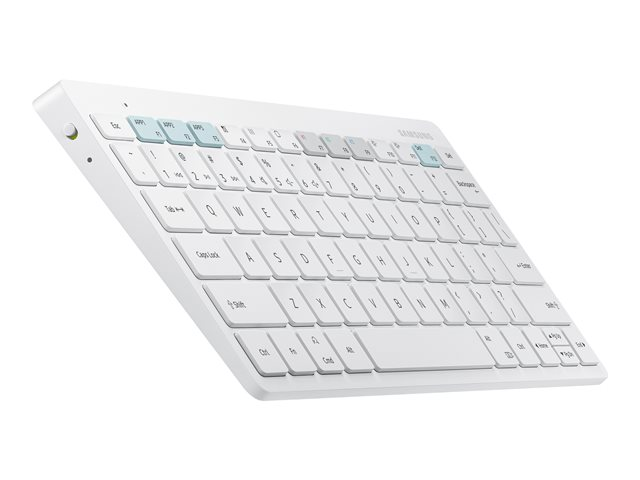 Produktbeskrivning Samsung Smart Keyboard Trio 500 EJ-B3400 - tangentbord - vit Inmatningsenhet Typ av enhet Tangentbord Gränssnitt Bluetooth 5.0 Anslutningsteknik Trådlös Antal tangenter 79 Snabbtangentsfunktion 3 snabbtangenter Färg Vit Dimensioner (BxDxH) 28.04 cm x 1.54 cm x 12.74 cm Vikt 412.3 g Tillverkarens garanti 1 års garanti - Nedladdningsbara filer
