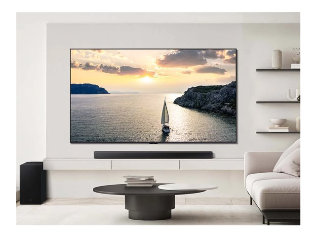 Produktbeskrivning Samsung HW-B750F - soundbar - för tv - trådlös Typ av produkt B-Series - soundbar - för tv - 5.1-kanals Källa för medieinnehåll USB-värd Systemkomponenter Bashögtalare, soundbar Högtalartyp Aktiv Förstärkare Integrerad Gränssnitt Bluetooth Ljudformat 2-kanals LPCM, MP3, AAC, OGG, FLAC, WAV, AIFF Specifikationer för högtalarsystem Soundbar