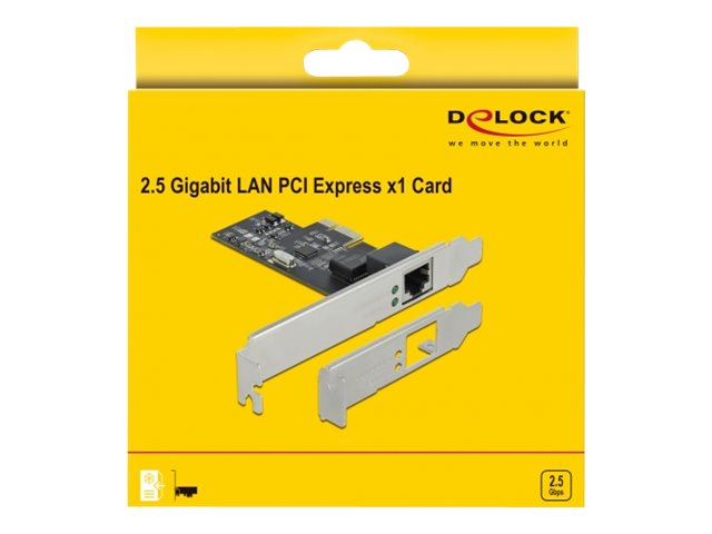-  Specifikation Dölj full specifikationProduktbeskrivning Delock PCI Express x1 Card to 1 x 2.5 Gigabit LAN - nätverksadapter - PCIe 2.1 - 2.5GBase-T x 1 Typ av enhet Nätverksadapter Formfaktor Instickskort Gränssnittstyp (buss) PCI Express 2.1 x1 Version av PCI-specifikation PCIe 2.1 Portar 2.5GBase-T x 1 Typ av kablage Ethernet 10Base-T, Ethernet 100Base-TX, Ethernet 1000Base-T, Ethernet 2.5GBase-T Datalänkprotokoll 10Mb LAN, 100Mb LAN, 1GbE, 2.5GbE Dataöverföringshastighet 2.5 Gbps Processor 1 x Realtek Semiconductor RTL8125B Standarder som följs IEEE 802.3, IEEE 802.3u, IEEE 802.1Q, IEEE 802.3ab, IEEE 802.1p, IEEE 802.3x Systemkrav Windows 8.1 / 10 (32/64 bitar)