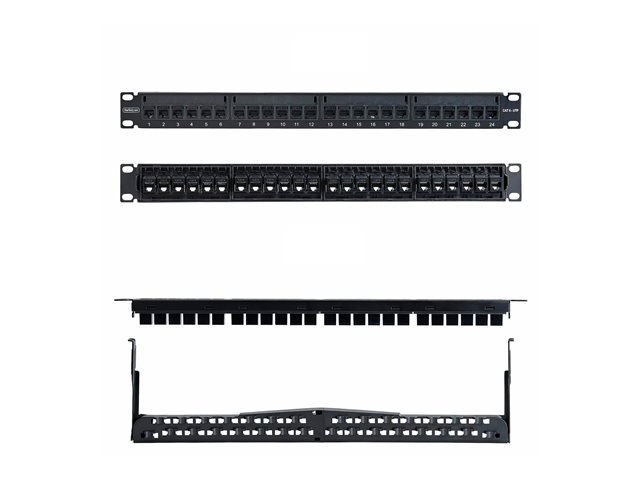 Produktbeskrivning StarTech.com patch-panel - 1U - 19" Produkttyp Patch-panel - CAT 5e/6 Placering/montering Rackmontering, väggmontering Förpackningens innehåll Hylsmuttrar, monteringsskruvar Dimensioner (BxDxH) 48.26 cm x 13.83 cm x 4.43 cm Vikt 630 g Produktmaterial Stål Färg Svart Antal portar 24 portar Höjd (U-format) 1U Standarder som följs RoHS, WEEE Tillverkarens garanti 3 års garanti - Nedladdningsbara filer