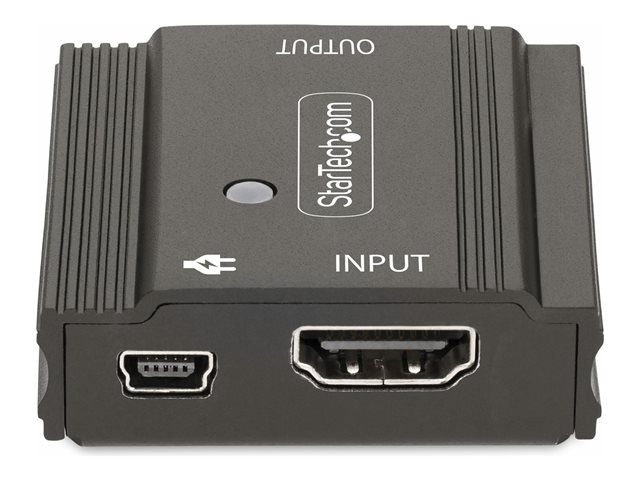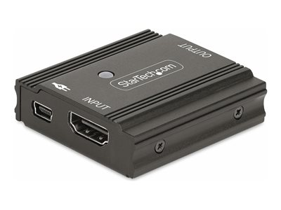 Produktbeskrivning StarTech.com 33ft (10m) 8K 60Hz HDMI Signal Booster, Active HDMI 2.1 Inline Repeater and Video Signal Amplifier up to 8K 60Hz/4K 144Hz, Compact HDMI Cable Extender - HDMI Signal Extension (33FT-8K-HDMI-BOOSTER) - förlängd räckvidd för audio/video - HDMI - TAA-kompatibel Typ av enhet Förlängd räckvidd för audio/video (sändare) Antal portar 2 Formfaktor Extern Dataöverföringshastighet 48 Gbps Datalänkprotokoll HDMI Max överföringsavstånd 10 m Dimensioner (BxDxH) 4.6 cm x 4.9 cm x 1.6 cm Vikt 57 g TAA-kompatibel Ja Tillverkarens garanti 2 års garanti - Tillbehör