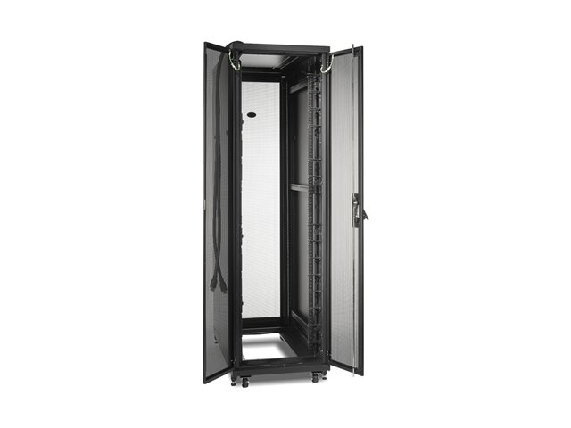 Produktbeskrivning APC NetShelter SV - rack - 42U Produkttyp Rack Racktyp Skåp Förpackningens innehåll Rackutjämningsfötter, 4 nedhållningskonsoler, sidopaneler, framlucka, bakdörr, tak, byggnadsmaskinvara Färg Svart Stativstorlek 19" Höjd (U-format) 42U Dimensioner (BxDxH) 60 cm x 106 cm x 205.7 cm Vikt 112.2 kg Egenskaper Låsbar främre dörr, låsbar bakre dörr, samma nyckel, låsbar sidopanel, hjul Tillverkarens garanti 5 års garanti Designat för P/N: SMT2200I2U-BR, SMT2200RM2UNC, SMT3000RM2UNC, SMT750RM2UC, SMTL1500RM3UC, SMTL1500RMI3UC, SMX2KRMLVNCUS, SRT1000XLA, SRT1500XLA, SRT2200RMXLA, SRT2200RMXLA-NC, SRT2200RMXLAUS, SRT2200XLA, SRT3000RMXLA, SRT3000RMXLA-NC, SRT3000RMXLT-NC, SRT3000XLA, SRT3000XLAUS, SRTL3KRM1UC, SRTL3KRM1UNC - Tillbehör