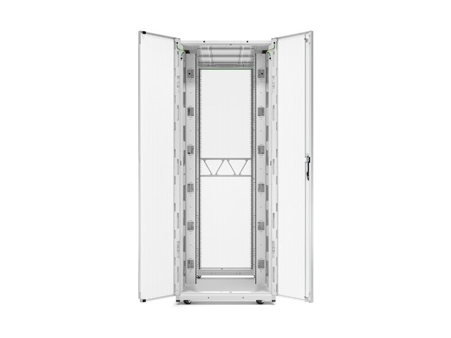 Produktbeskrivning APC NetShelter SX Gen 2 - rack - 1991 H x 750 B x 1200 D mm, med sidor - 42U - TAA-kompatibel Produkttyp Rack - 1991 H x 750 B x 1200 D mm, med sidor Racktyp Skåp Placering/montering Golvstående Förpackningens innehåll Sidopaneler, tangenter, byggnadsmaskinvara, nivelleringsfötter, monteringsmaskinvara, dörrar med samma nyckel, förinstallerade hjul, räfflad sidopanel Färg Vit Stativstorlek 19" Höjd (U-format) 42U Produktmaterial Stål Dimensioner (BxDxH) 75 cm x 120 cm x 199.1 cm Vikt 157.53 kg Egenskaper Integrerad kabelhantering, borttagbara sidopaneler, perforerad dörr (80%), 270° dörröppning TAA-kompatibel Ja Tillverkarens garanti 5 års garanti Designat för P/N: SC500RM1U, SMT1000RM1U, SMT750RM1U, SMT750RM2UCNC, SRTL10KRM4UT, SRTL2K2RM1UWC, SRTL2K2RM1UWNC, SRTL3KRM1UIC, SRTL3KRM1UINC, SRTL3KRM1UWC, SRTL3KRM1UWNC, SRTL5KRM2UI-HW, SRTL5KRM2UT-5KRMTF, SRTL5KRM2UT-5KTF, SRTL5KRM2UT-HW, SRTL8KRM4UT, SRYL10K20RMXLT, SRYL15K20RMXLT, SRYL5K20RMXLT - Tillbehör