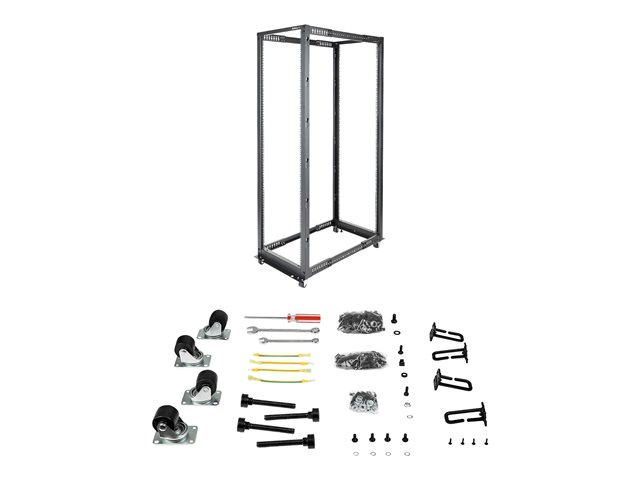 Produktbeskrivning StarTech.com 42U 19-tums öppet serverrack - 4 stolpar justerbart djup 59-104 cm mobilt - Fristående rullande rack för nätverks-/datorutrustning - Dell PowerEdge HP ProLiant ThinkServer - rack - 42U Produkttyp Rack Förpackningens innehåll 50 m6-skruvar, 16 x M6-skruvar, 50 M6 hylsmuttrar, 4 vertikala rackskenor, 24 monteringsskruvar, 2 baskonsoler, 2 toppkonsoler, 48 x M8-bultar, 8 x hörnsektioner, 48 x M8-brickor, M8-nyckel (13 mm), 50 PVC-koppbrickor, 24 kabelhanteringskrokar, 4 x hjul, 4 x utjämningsfötter, 32 x M6 platta brickor, 16 x M6 flänsmuttrar Färg Svart Höjd (U-format) 42U Produktmaterial Stål Dimensioner (BxDxH) 60 cm x 59.18 cm x 197.1 cm Vikt 38.5 kg Tillverkarens garanti 2 års garanti Designat för P/N: CABCAGENT62B, CABCAGENTS62, CABCAGENUT2B, CABCAGENUT6B, CABCAGENUTS2, CABCAGENUTSB, CABSCREWM52B, CABSCREWM5B, CABSCREWM62B, CABSCREWM6B, CABSCREWSB, CABSCREWSM5, CABSCREWSM5B, CABSCREWSM62, CABSCREWSM6B, CABSCRWS1224, CABSCRWSM62B - Tillbehör