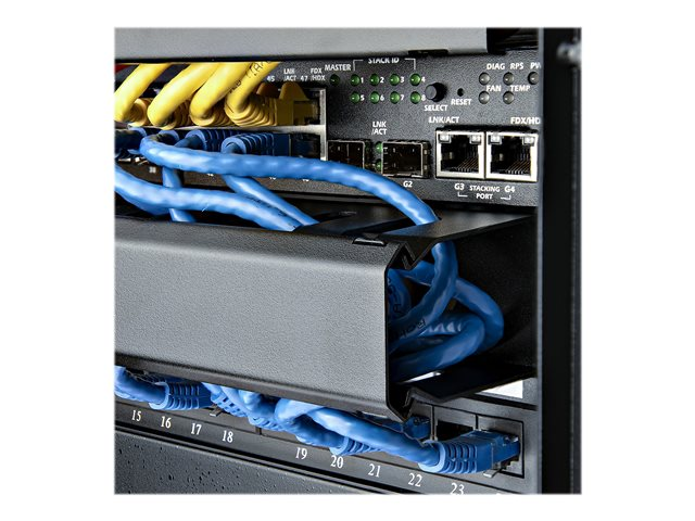 StarTech.com 1U horisontell kanalpanel för kabelhantering med fingrar och lock för hylla