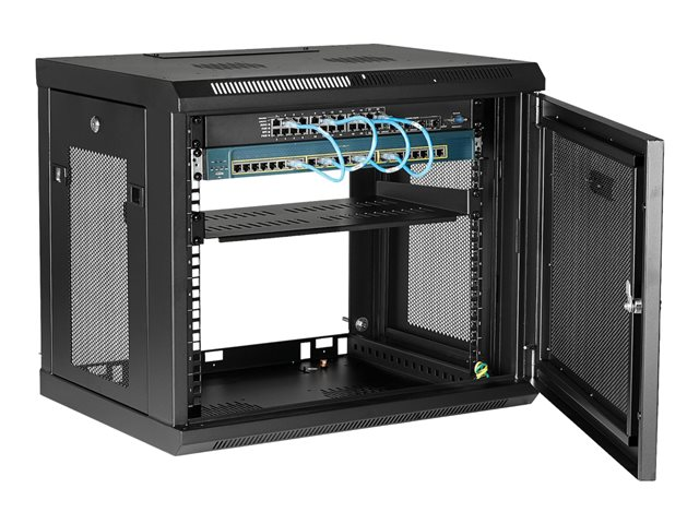 Produktbeskrivning StarTech.com 9U väggmonterat serverrackskåp - 15 tum djup - rackmonteringsskåp - 9U Produkttyp Rackmonteringsskåp Placering/montering Väggmontering Förpackningens innehåll 2 sidopaneltangenter, 2 dörrnycklar, 36 skruvar (12 - 24), rulle med kardborreband, 36 hylsmuttrar Färg Svart Höjd (U-format) 9U Produktmaterial Stål Dimensioner (BxDxH) 60 cm x 45 cm x 50.4 cm Vikt 17.5 kg Egenskaper Låsbar främre dörr, tangentlås, inställningsbart djup, med gångjärn, främre dörr med nät Tillverkarens garanti 5 års garanti - Tillbehör