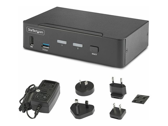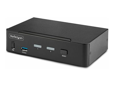 Produktbeskrivning StarTech.com 2-Port DisplayPort KVM Switch, 8K 60Hz / 4K 144Hz, Single Display, DP 1.4, 2x USB 3.0 Ports, 4x USB 2.0 HID Ports, Push-Button & Hotkey Switching, TAA Compliant - OS Independent, Metal Housing (D86A2-2-PORT-8K-KVM) - omkopplare för tangentbord/video/mus/ljud/USB - 2 portar - TAA-kompatibel Typ av enhet Omkopplare för tangentbord/video/mus/ljud/USB - 2 portar Undertyp KVM Portar 2 x KVM/ljud/USB Antal KVM-användare 1 lokal användare Prestanda Dataöverföringshastighet: 5 Gbit/s Funktioner Snabbknappar, tryckknapp Strömtillförsel AC 100-240 V 1 A Dimensioner (BxDxH) 16 cm x 10 cm x 4 cm Vikt 600 g Färg Svart TAA-kompatibel Ja Tillverkarens garanti 2 års garanti - Tillbehör
