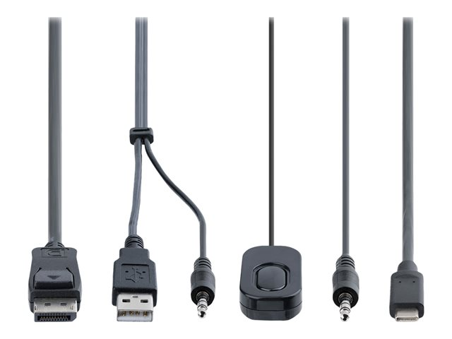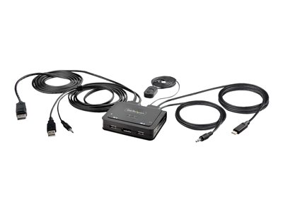 Produktbeskrivning StarTech.com 2-Port Hybrid USB-C DisplayPort Cable KVM Switch, 4K 60Hz, Compact KVM with 6ft/1.8m USB-A/DisplayPort/Audio & 4ft/1.2m USB-C Integrated Host Cables, Bus Powered - Remote Push Button/Hotkey Switching (C2-D46-UAC-CBL-KVM) - omkopplare för tangentbord/video/mus/ljud/USB - kompakt - 2 portar Typ av enhet Omkopplare för tangentbord/video/mus/ljud/USB - 2 portar Undertyp KVM Portar 2 x KVM/ljud/USB Antal KVM-användare 1 lokal användare Funktioner Drivs via USB, fjärromkopplare, DisplayPort alternativt läge, stöd för 2,1 ljudkanal, ABS-hus Standarder som följs USB 2.0 Dimensioner (BxDxH) 8 cm x 9.5 cm x 2.4 cm Vikt 380 g Färg Svart Systemkrav Linux, Google Chrome OS, Apple macOS 10.12 - 10.15, Apple macOS 11.0, Microsoft Windows 7 / 8 / 8.1 / 10 / 11, Apple macOS 12.0 Tillverkarens garanti 2 års garanti - Tillbehör