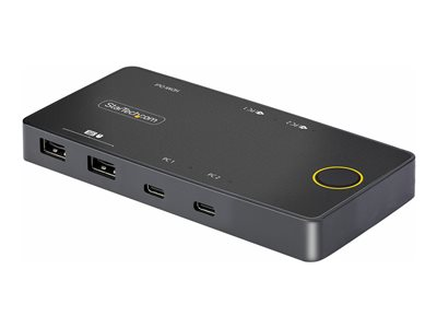Produktbeskrivning StarTech.com 2-Port USB-C KVM Switch, Single-4K 60Hz HDMI Monitor, Dual-100W Power Delivery Pass-through Ports, Bus Powered, USB Type-C/USB4/Thunderbolt 3/4 Compatible - Small Form Factor (C2-H46-UC2-PD-KVM) - omkopplare för tangentbord/video/mus - 2 portar Typ av enhet Omkopplare för tangentbord/video/mus - 2 portar Undertyp KVM Portar 2 x KVM/ljud/USB Antal KVM-användare 1 lokal användare Prestanda Dataöverföringshastighet: 480 Mbps Funktioner 7.1-kanaligt ljudstöd, tryckknapp, bussdriven Standarder som följs Power Delivery 3.0 Strömtillförsel AC 120/230 V Dimensioner (BxDxH) 14 cm x 7 cm x 1.5 cm Vikt 200 g Färg Svart Tillverkarens garanti 2 års garanti - Tillbehör
